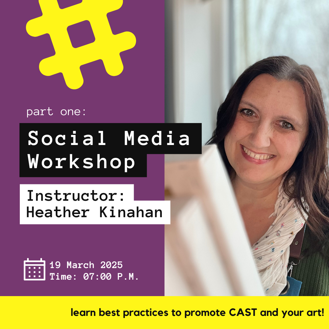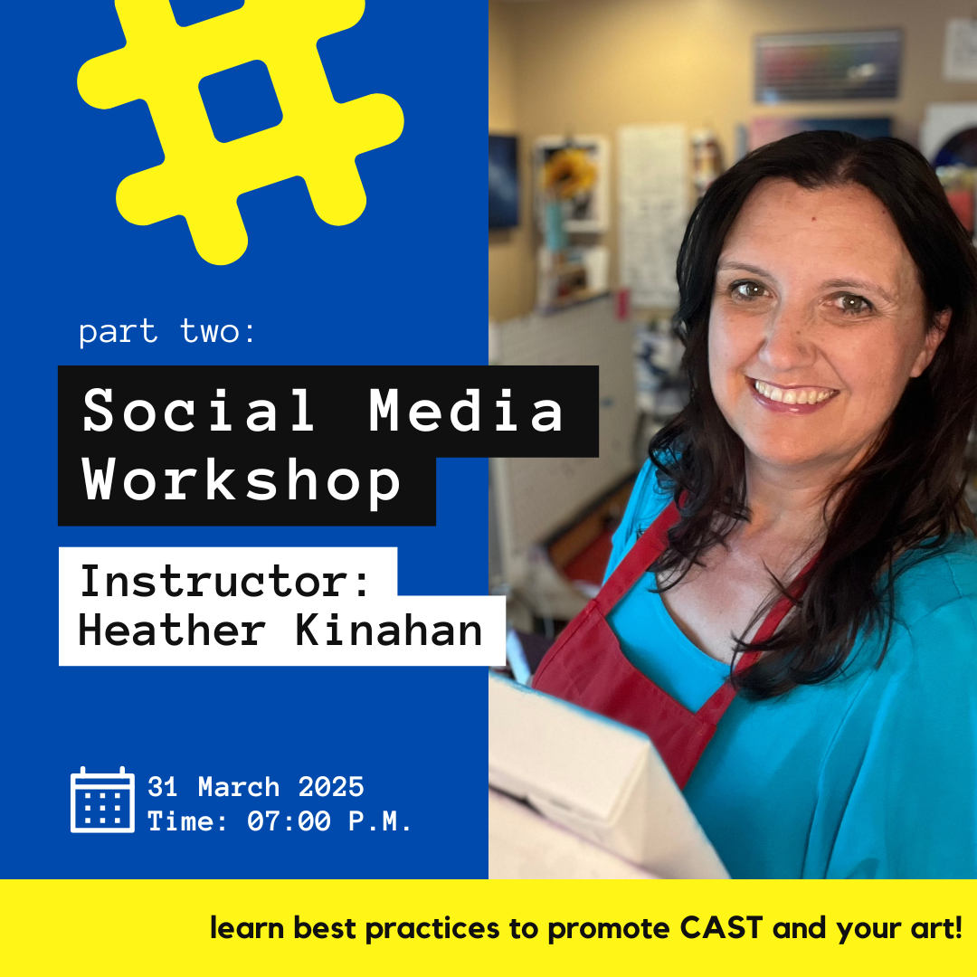 Join us for part two of our social media workshop series designed for CAST artists looking to further enhance their online presence. Building on the strategies from part one, this session will dive deeper into advanced techniques for showcasing your work, boosting engagement, and effectively promoting CAST across social media platforms. Whether you're refining your skills or looking for fresh ideas, this workshop will equip you with the insights needed to elevate your artistic brand and strengthen your connections within the community!