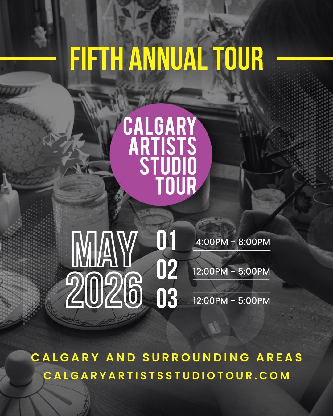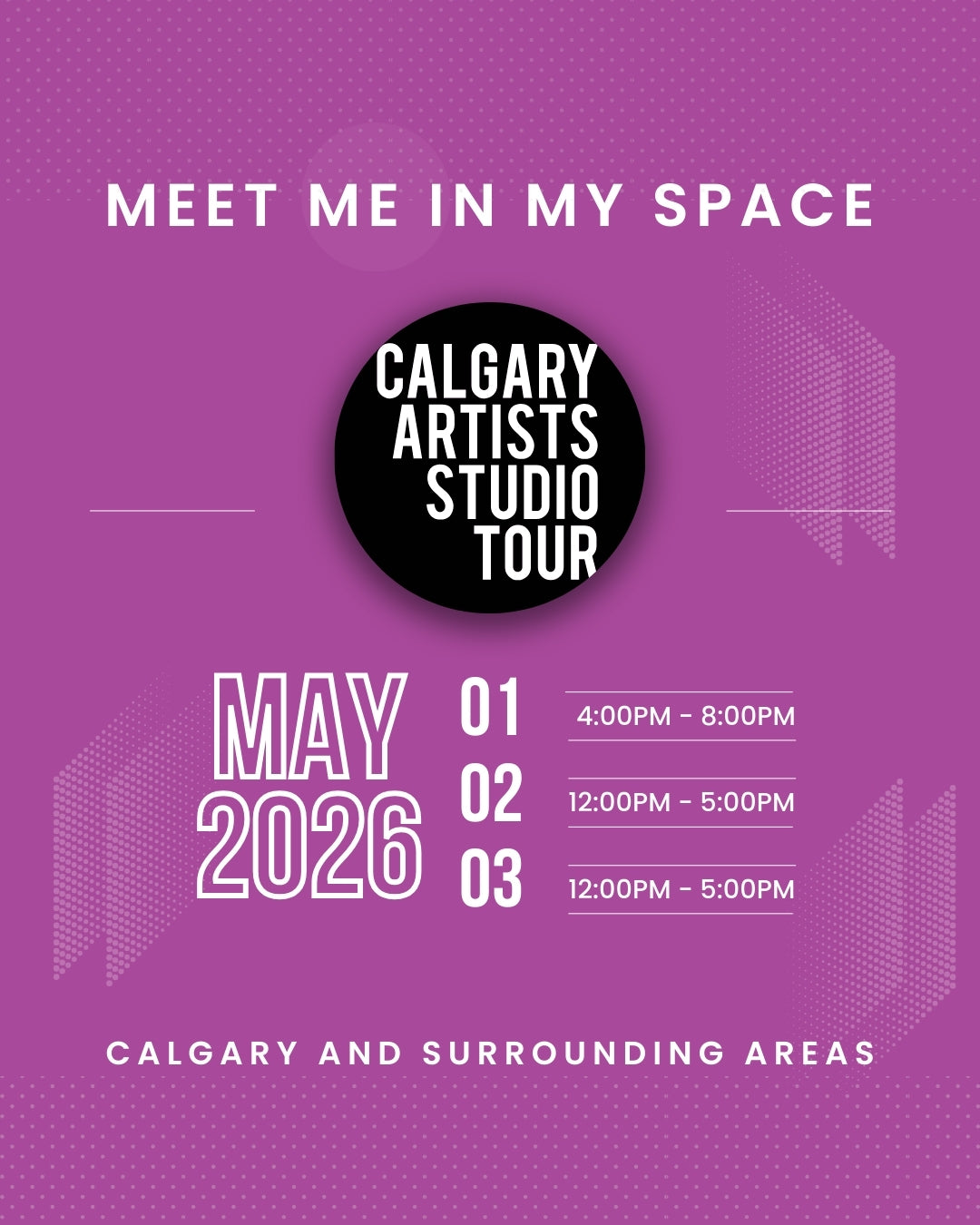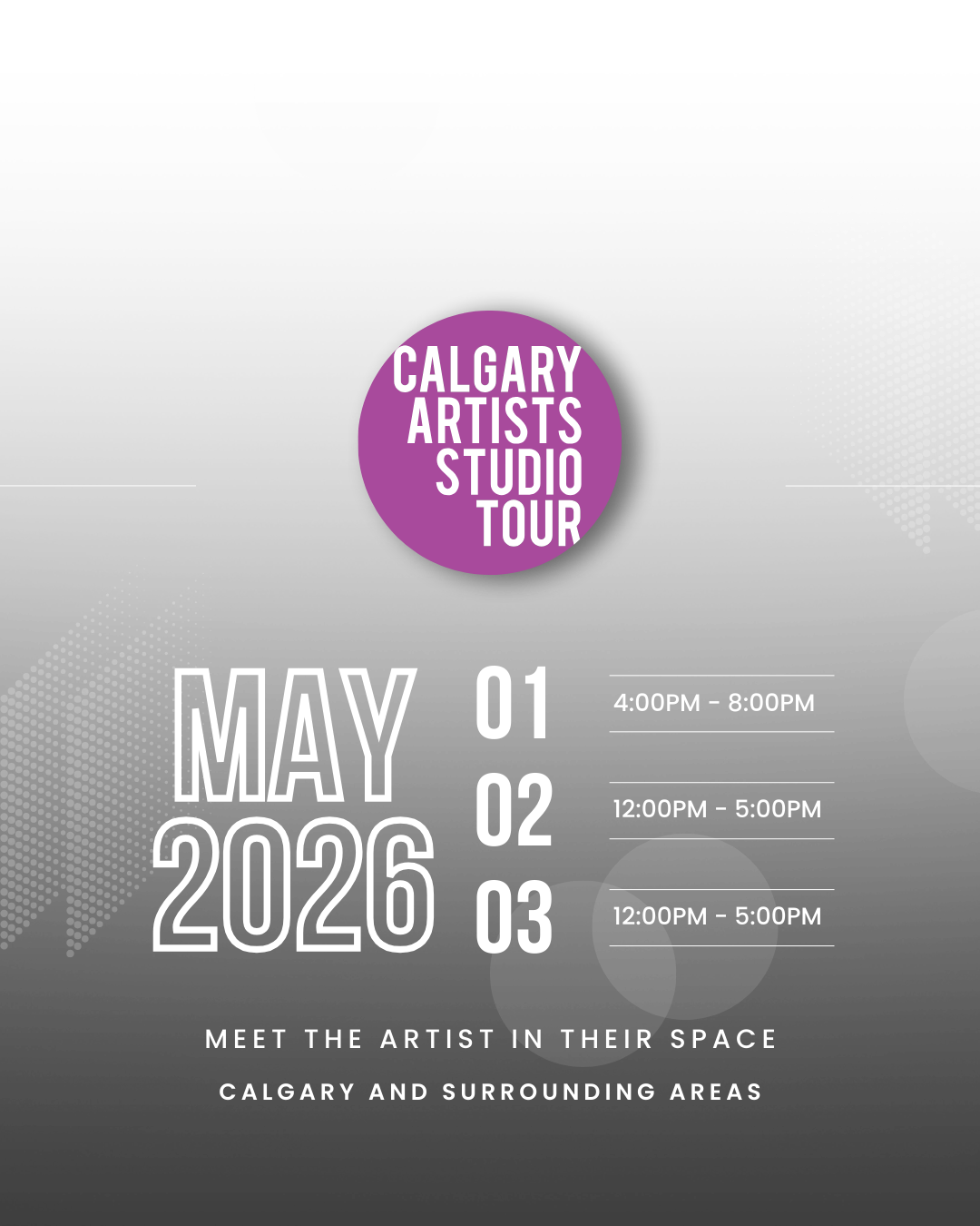 🎨✨ Mark your calendars for the Calgary Artist Studio Tour! 🗓️ Join us from May 1st to 3rd for a weekend of creativity and inspiration!